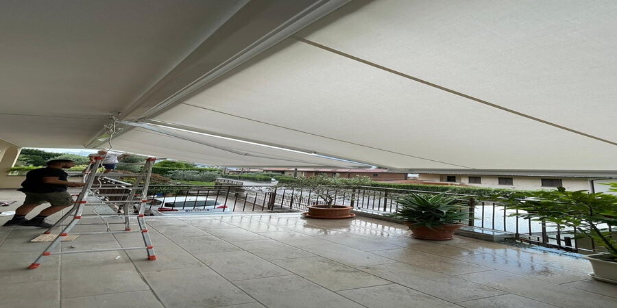 - Tende da sole a veranda: sono ideali per coprire grandi spazi, come terrazze o giardini. Sono costituite da un telo che si estende su un'ampia superficie.